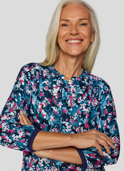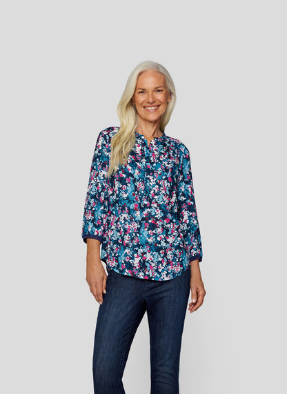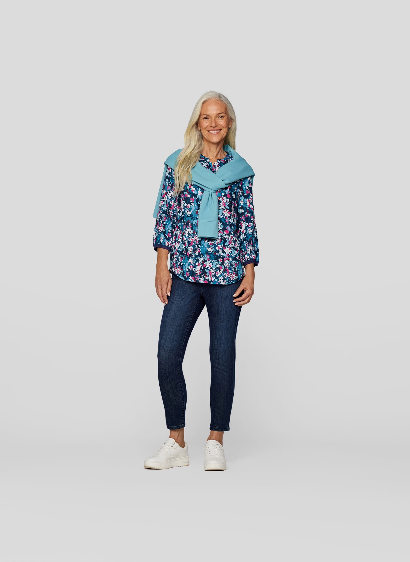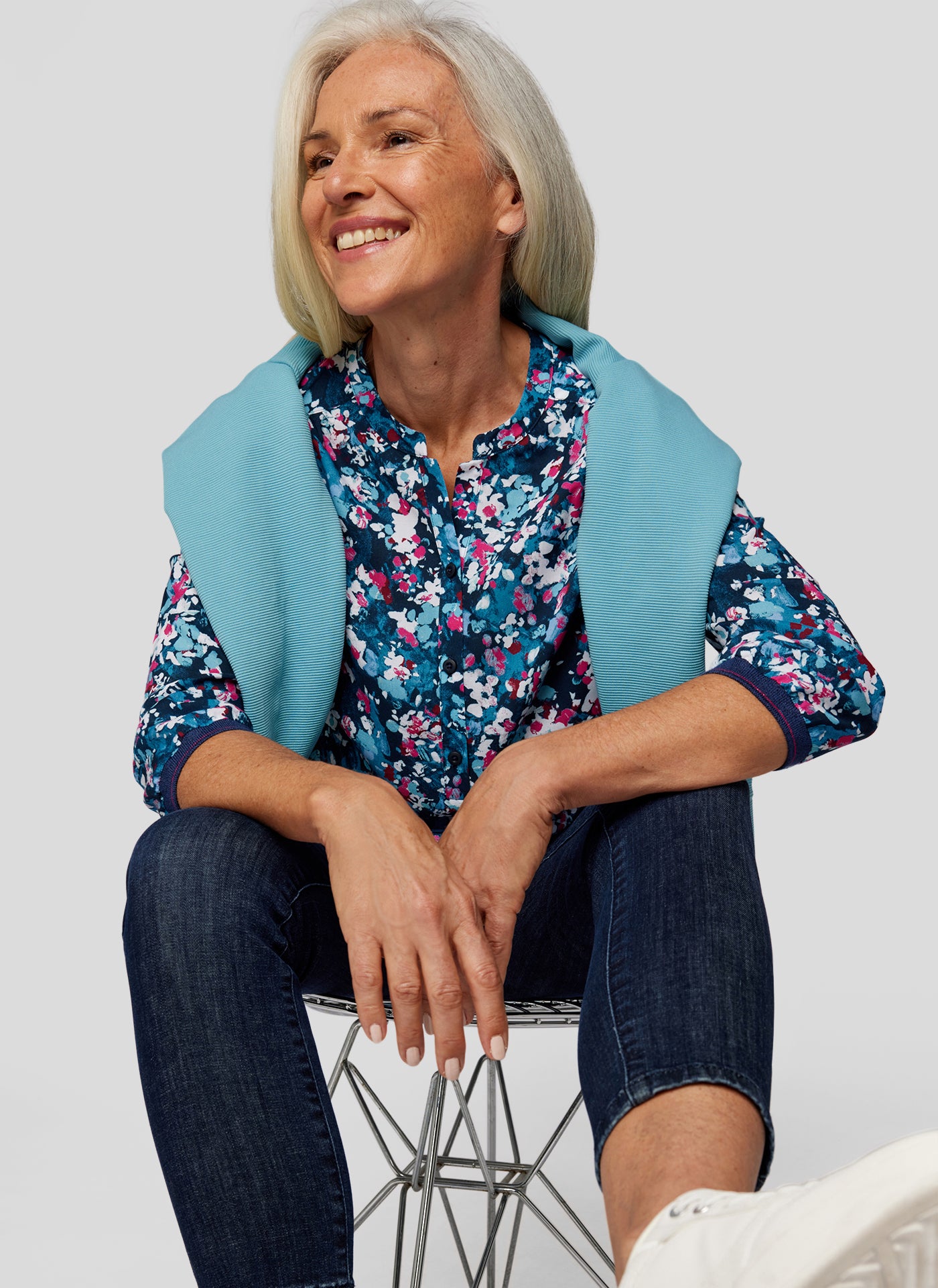 This blouse with a stand-up collar and 3/4 sleeves will enhance any outfit. The patterned design in pacific blue gives your look a feminine touch and ensures a stylish appearance in any situation. Made from 100% viscose, it is not only comfortable to wear, but can also be combined in many different ways.