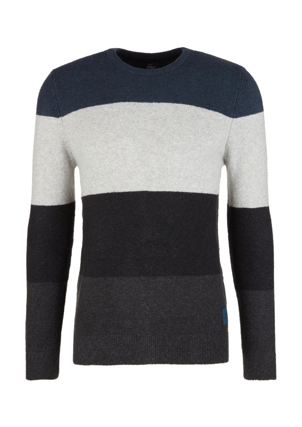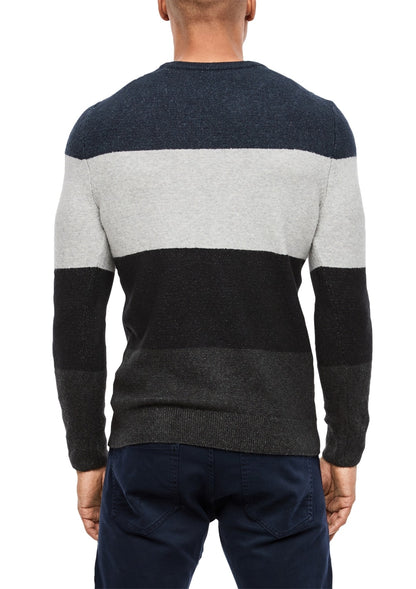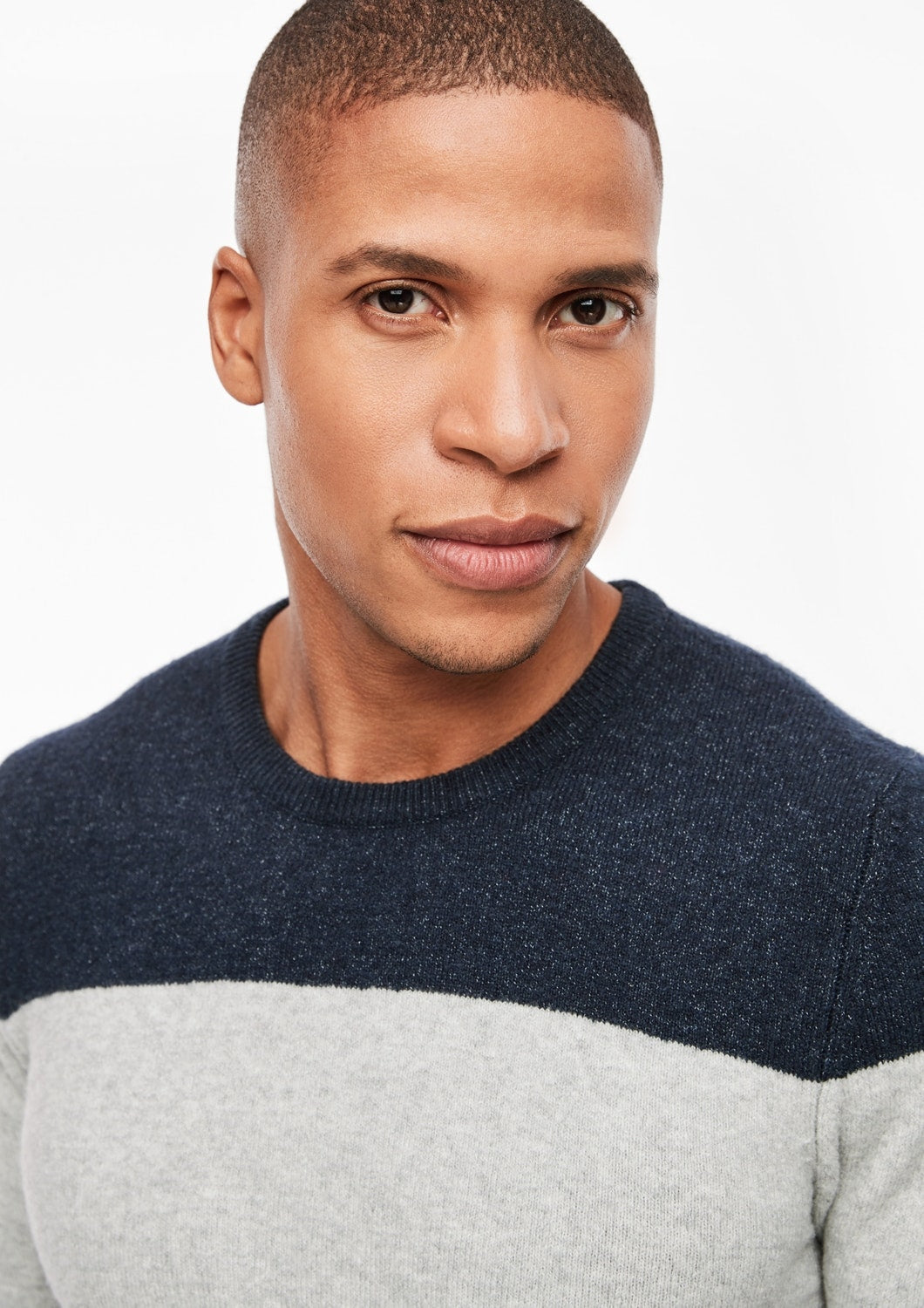 extra-wide eye-catching block stripes with melange effect, round neck with narrow ribbed trim, sleeves and hem also with ribbed cuffs, regular fit; Back length for size M approx. 70 cm, particularly soft, high-quality material blend with wool content
