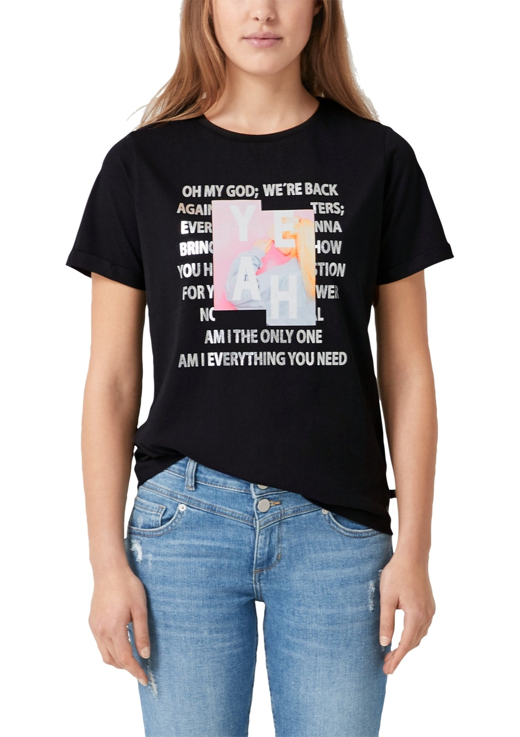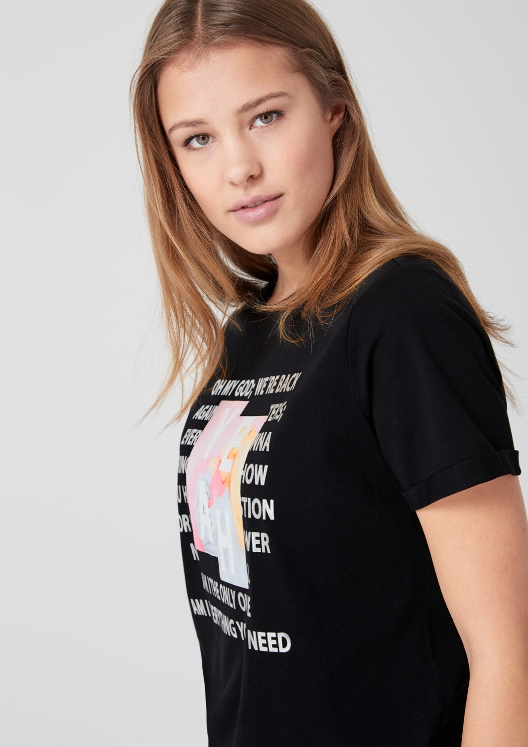 striking front print with printed patch application; several colorways with sequins, round neckline with fine ribbed trim, cuffs with fixed cuffs, loose fit; Back length for size S approx. 60 cm, jersey quality made of pure cotton