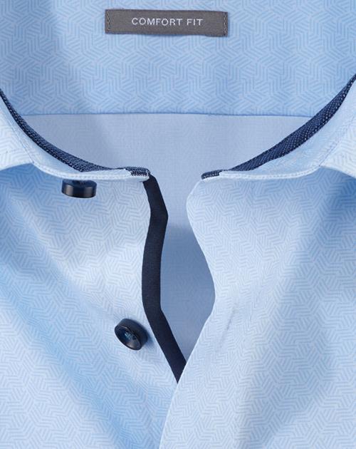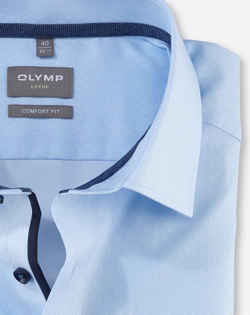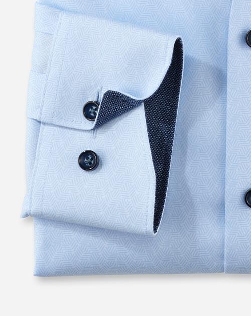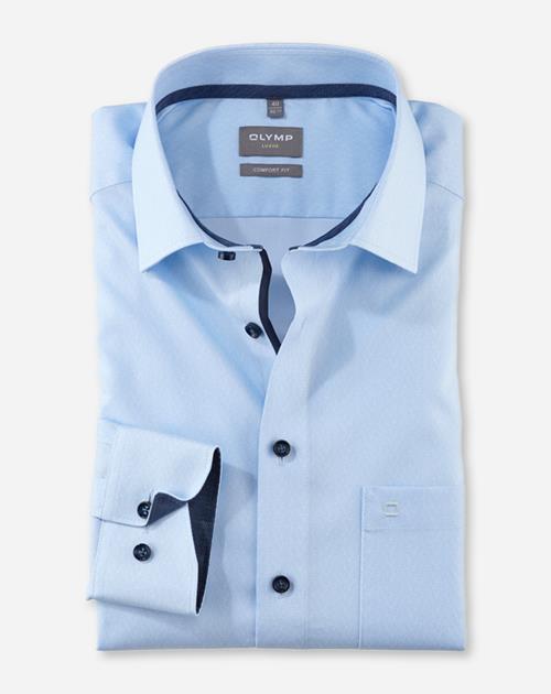 Einfach waschen, trocknen, anziehen ? OLYMP Luxor comfort fit bleibt auch ohne Bügeln den ganzen Tag glatt. Das knitter- und bügelfreie Businesshemd aus 100% Baumwolle macht immer eine gute Figur. Der Faux-Uni-Look des Oberstoffes in Blau harmoniert mit dem geschmackvoll darauf abgestimmten Kontrastgewebe an den Innenseiten von Kragen und Manschetten in perfekter Art und Weise. Ein eleganter Global-Kent-Kragen macht den Style komplett. Der atmungsaktive und hautsympathische Stoff hält jeden Stress aus.
