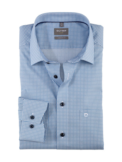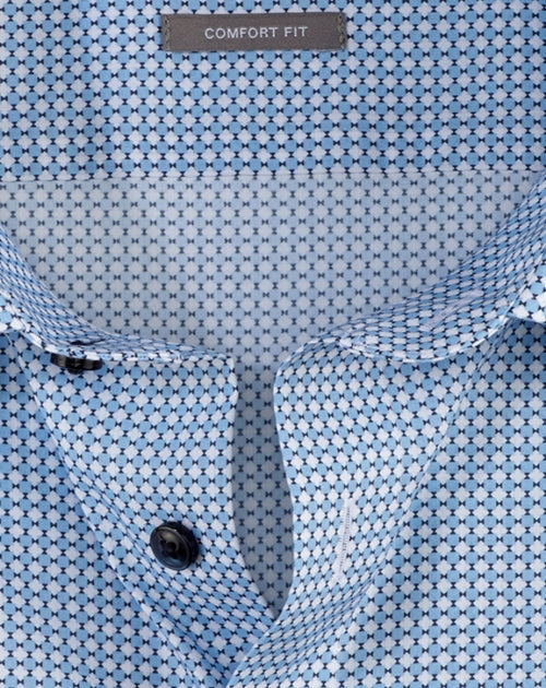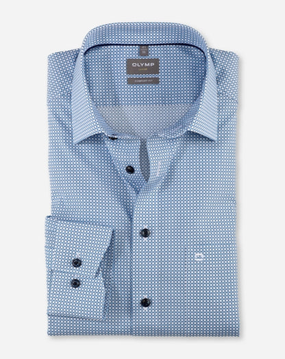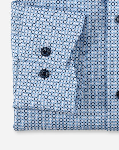 Ansprechend Minimal-Dessin mit Akzent auf Bleu und dezent schimmerndem Changé bringt den Frühling ins Office. Mit feinen Garnausspinnungen aus Baumwolle garantiert das angenehm kühl wirkende Popelinegewebe hautsympathischen Tragekomfort. Das geradlinig geschnittene Businesshemd ist atmungsaktiv sowie pflege- und bügelleicht. Ohne Brusttasche.