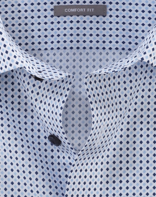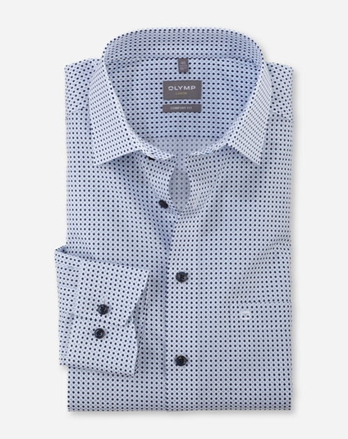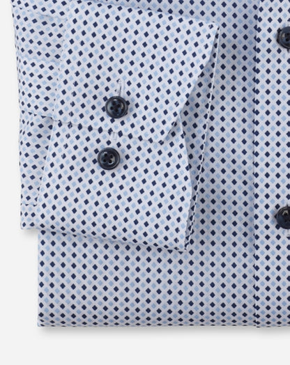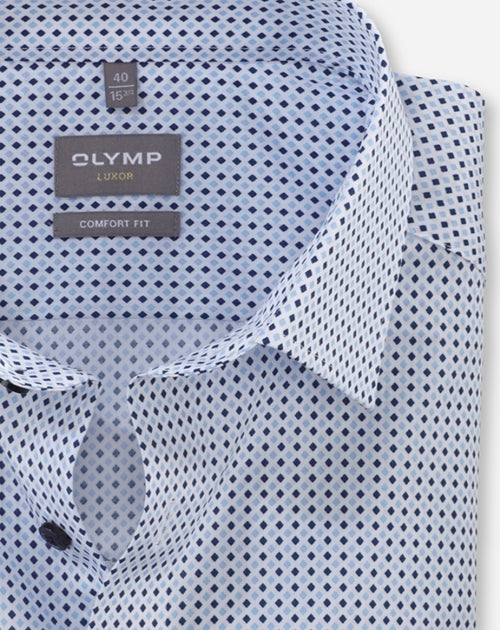 Sympathisches Rauten-Minimal-Dessin, vielseitiger New Kent und sprichwörtlich coole Textur ? das komfortabel geschnittene OLYMP Luxor Businesshemd aus feinem Baumwoll-Popeline sorgt auch bei sommerlichen Temperaturen für hautsympathischen Tragekomfort. Bügel- und knitterfrei.