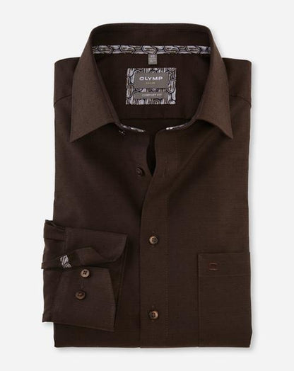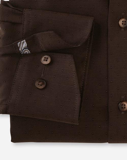 Gewebte Dessins sind Ausdruck von textilem Know-how und modischem Qualitätsanspruch. Aus reiner Baumwolle und mit feinen Garnausspinnungen gefertigt, lässt sich dieses einfarbige OLYMP Luxor comfort fit dresscodegemäß einsetzen, sendet aber durch das tonale Dobby-Muster auf feiner Struktur wirkungsvolle modische Signale. Das maskulin geradlinige Businesshemd überzeugt mit komfortabler Linienführung und einem smarten New Kent, der vielseitig auch mal ohne Krawatte auskommt. Natürlich mit dem gewohnt zeitsparenden Handling in der Pflege, ein perfekter Allrounder ? auch auf Reisen.