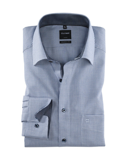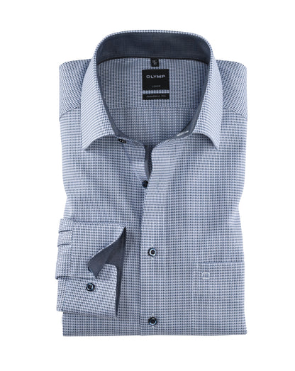 Dieses OLYMP Luxor modern fit Hemd aus reiner Baumwolle ist der perfekte Reisebegleiter. Ob angezogen oder im Koffer: Durch die bügel- und knitterfreien Eigenschaften kommt es faltenfrei ans Ziel. Das Design des Oberstoffs in Marine harmoniert mit dem geschmackvoll darauf abgestimmten Ausputz am Krageninnensteg und den Innenmanschetten sowie der paspelierten Knopfleiste in perfekter Art und Weise. Ein eleganter New-Kent-Kragen und weitenverstellbare Kombimanschetten runden das Gesamtbild ab.