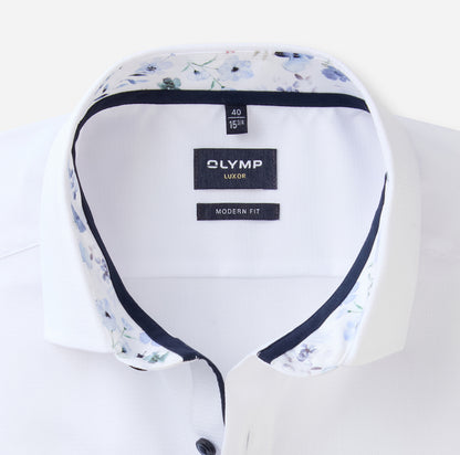 Klassisch einfarbig, sportlich elegant. Das OLYMP Luxor modern fit aus feinen Baumwolle-Garnausspinnungen überzeugt mit dem edlen Changé des Webmusters. Der kosmopolitische Global Kent bleibt auch bei geöffnetem Kragenknopf souverän. Atmungsaktiv, hautsympathisch und zeitsparend bügelfrei. Ein modisches Businesshemd, das immer funktioniert.
