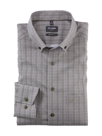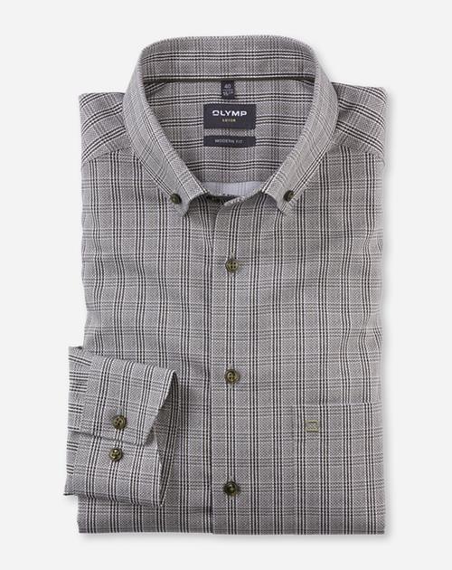 Dezent und wirkungsvoll ? die feine Musterkomposition in Oliv sorgt für den individuellen Unterschied in Ihrem Business-Look. Das körpernah geschnittene OLYMP Luxor aus Baumwolle sorgt mit exzellenten Glättewerten für die hautsympathische Performance. Die Textur ist pflege- sowie bügelleicht. Der beliebte Button-down-Kragen unterstreicht den sportlich-eleganten Auftritt.