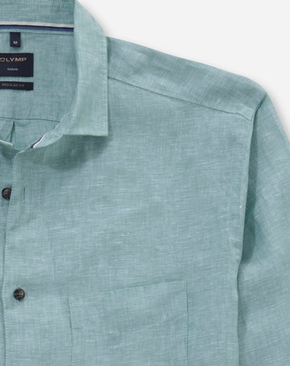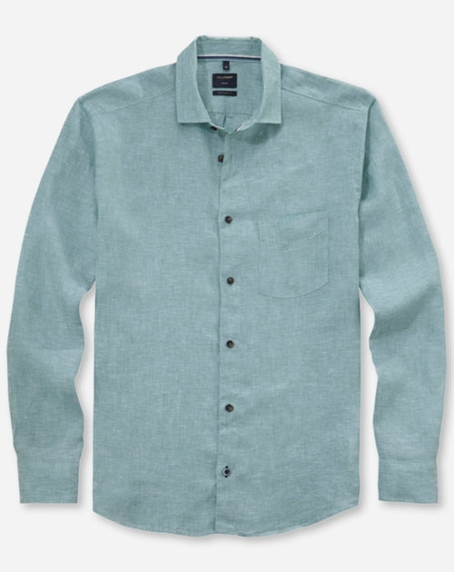 Dieses OLYMP Casual aus Leinen besticht durch die typische edel-matte Textur in vielseitigem Uni. Die klassische Schnittführung mit Kent-Kragen passt zu eleganten Stoffhosen ebenso wie zu lässigen Jeans. Dank der dezent kühlenden Materialeigenschaft eignet sich der Style perfekt für stilvolle Looks an wärmeren Tagen. Hier in Grün.