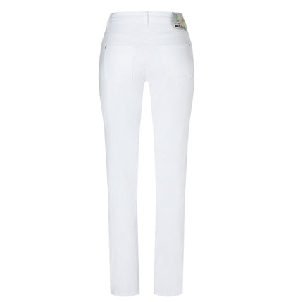 Straight Fit gerades Bein feminine Silhouette normale Leibhöhe bequeme Taille Five Pocket DREAM Wonder Light Denim innovative, hochelastische Qualität mit Modal sehr leicht im Tragegefühl weich im Griff authentische Optik formender Shaping-Effekt hervorragendes Rücksprung-Verhalten über Better Cotton gesourcte Baumwolle Das Model ist 1,75m groß und trägt die MAC Hosengröße 34 Fußweite bei Größe 36: 34cm