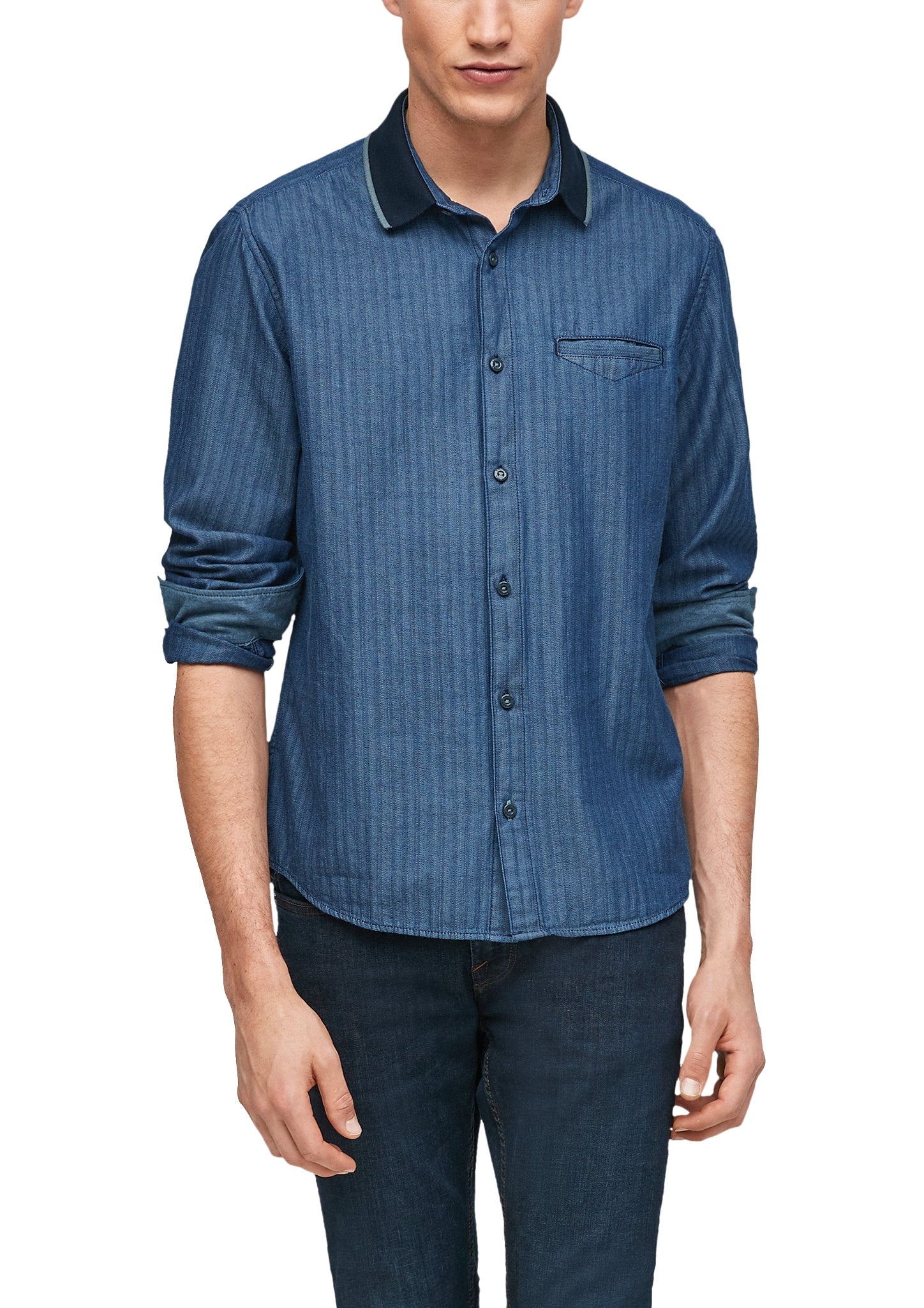 Regular: Baumwollhemd mit Polokragen