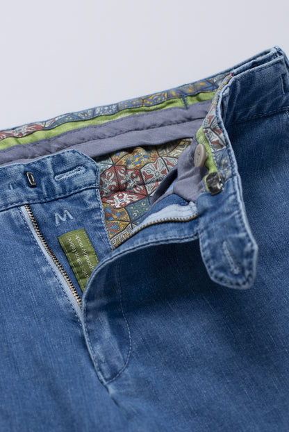 Das Modell Oslo von MEYER-Hosen ist der perfekte Begleiter für alle, die viel unterwegs sind. Die Autofahrer- und Reisehose hat einen speziellen Dehnbund, der bis zu 8 cm nachgibt und selbst bei langem Sitzen nicht drückt. Die moderne Flat Front hat Einschubtaschen, zwei geknöpfte Gesäßtaschen und die MEYER-typische, versteckte Tresortasche, die gerade auf Reisen besonders praktisch ist. Der Coolmax Coloured Denim kommt hier in besonders dehnbarer Super-Stretch Qualität für noch mehr Komfort und der innovativen Solar Save Ausrüstung für einen natürlichen Schutz vor schädlicher UV-Strahlung.