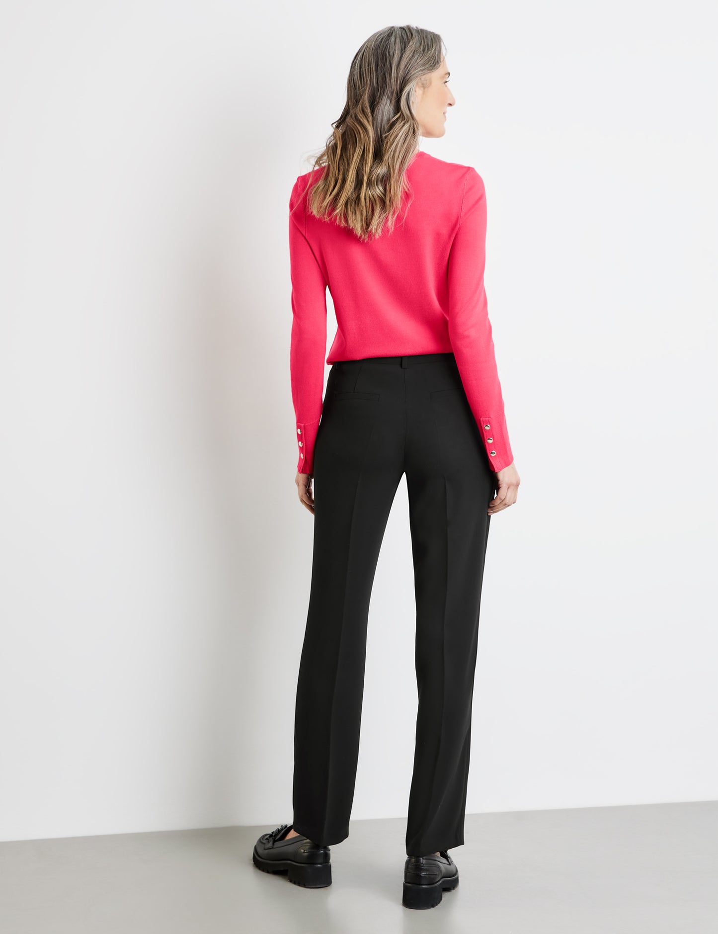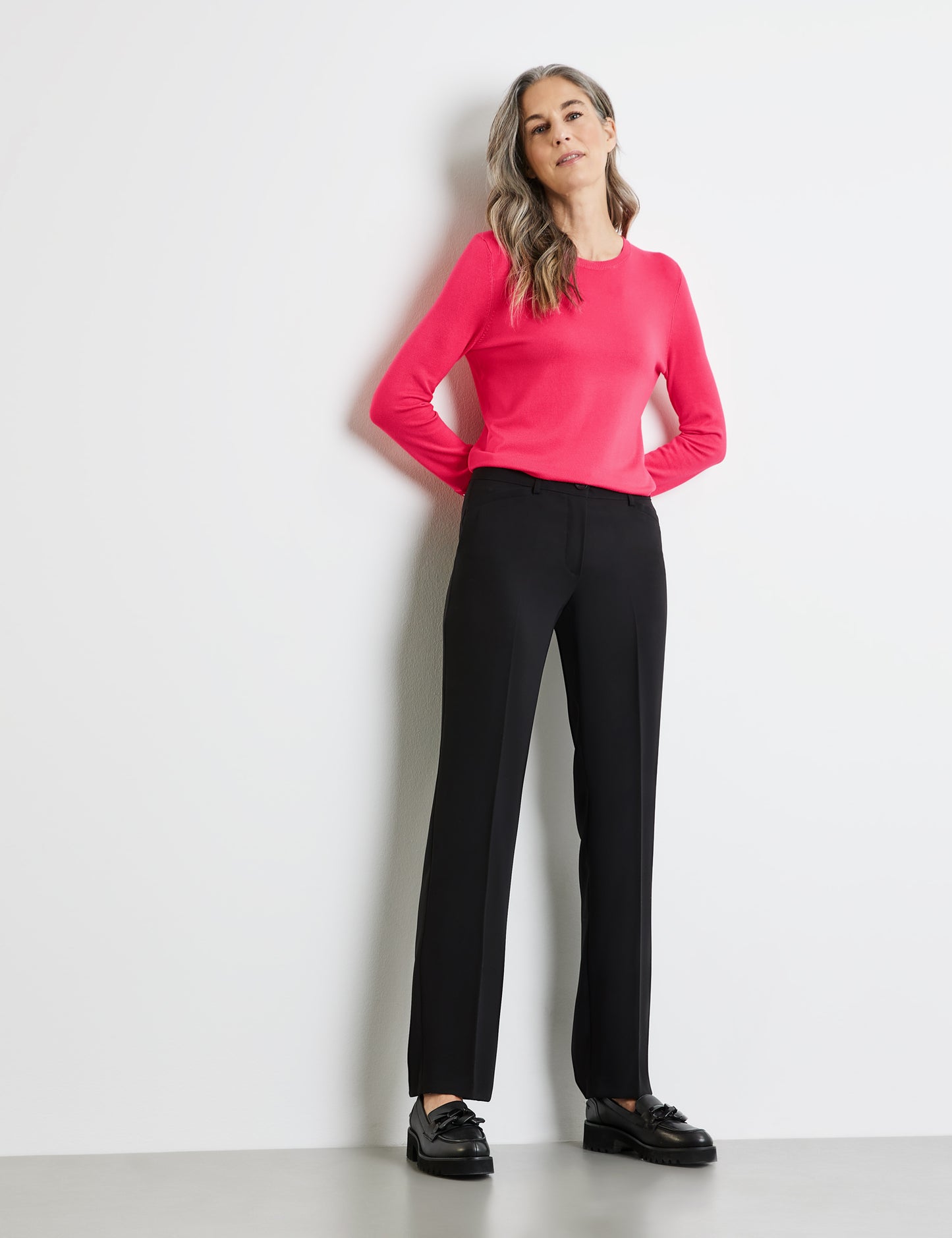 Bund mit Gürtelschlaufen. Diese schlichte Hose aus fließender Qualität ist ein Must-have in jedem Kleiderschrank. Gleich ob im Office oder auch zu einem festlichen Anlass, das schlichte und elegante Design mit Paspeltaschen und Bügelfalten lässt sich vielseitig kombinieren. Eine Bluse passt hier ebenso gut zu, wie ein Longsleeve und Pullunder. Damit haben Sie einen echten Allrounder für gepflegte Looks!