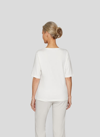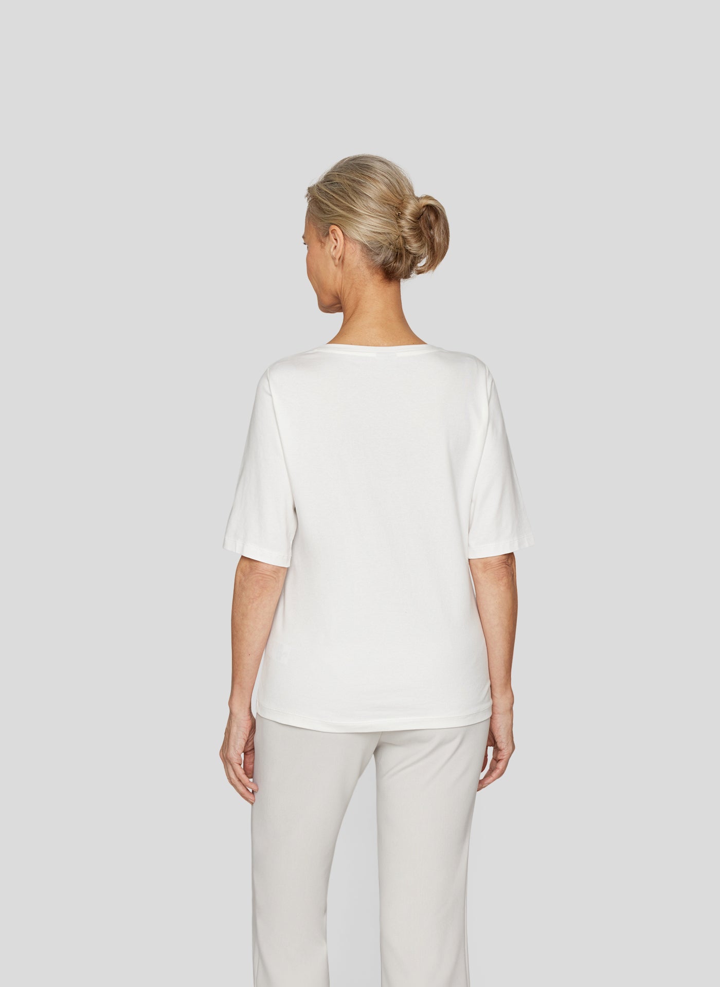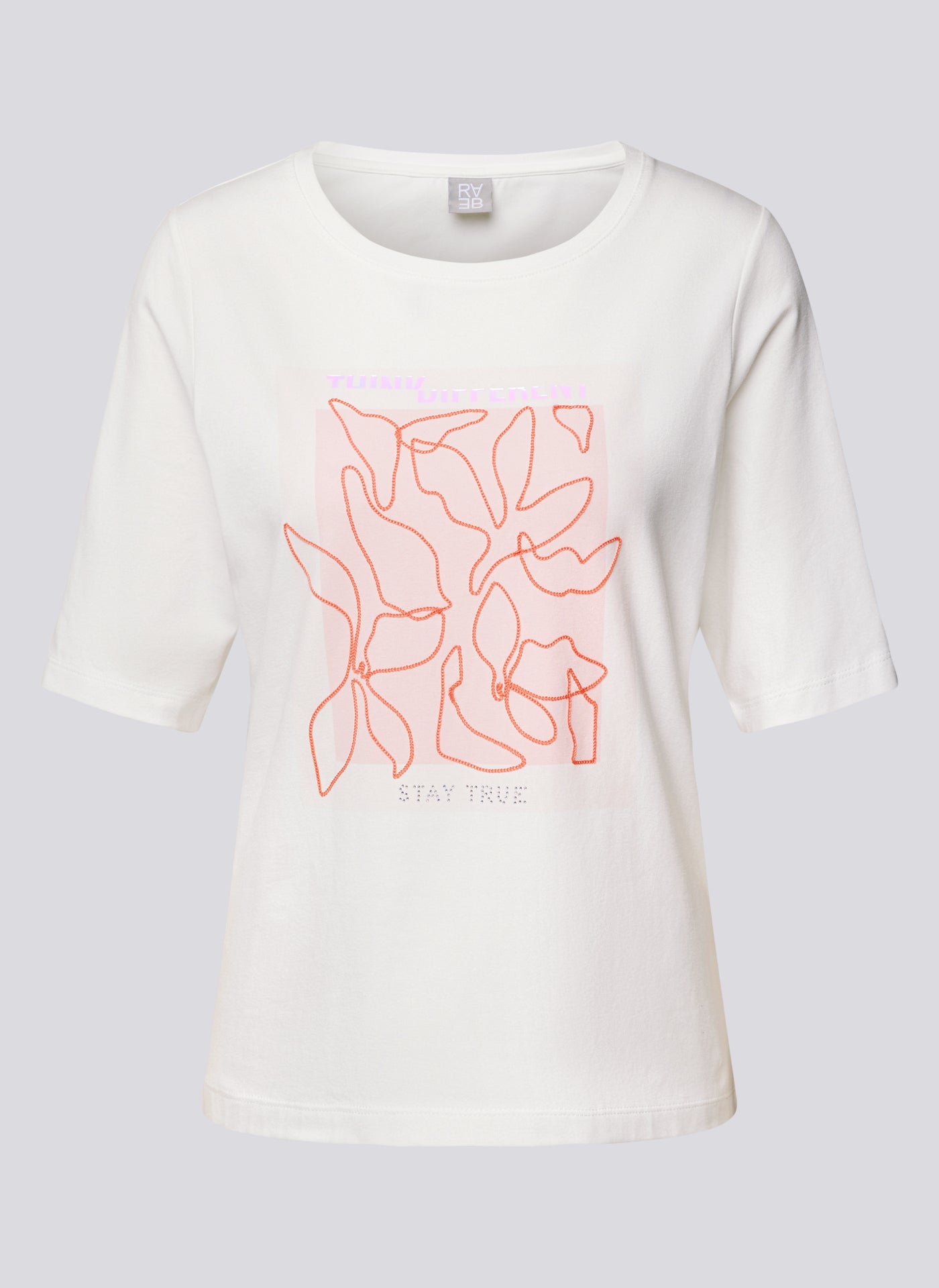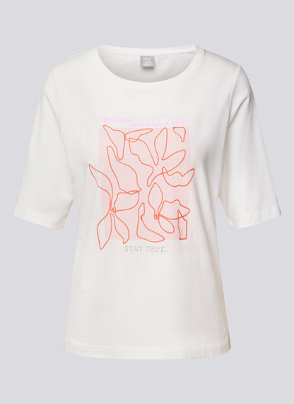 Der dezente Schriftzug _STAY TRUE_ und die feinen Strassdetails verleihen dem Shirt eine besondere Note. Der klassische Rundhalsausschnitt und die halblangen Ärmel sorgen für einen angenehmen Tragekomfort. Modernes Design _ Stylischer Print mit trendigem Schriftzug. Hoher Tragekomfort _ Weiche, angenehme Stoffqualität. Figurschmeichelnder Schnitt _ Lässig und feminin zugleich.
