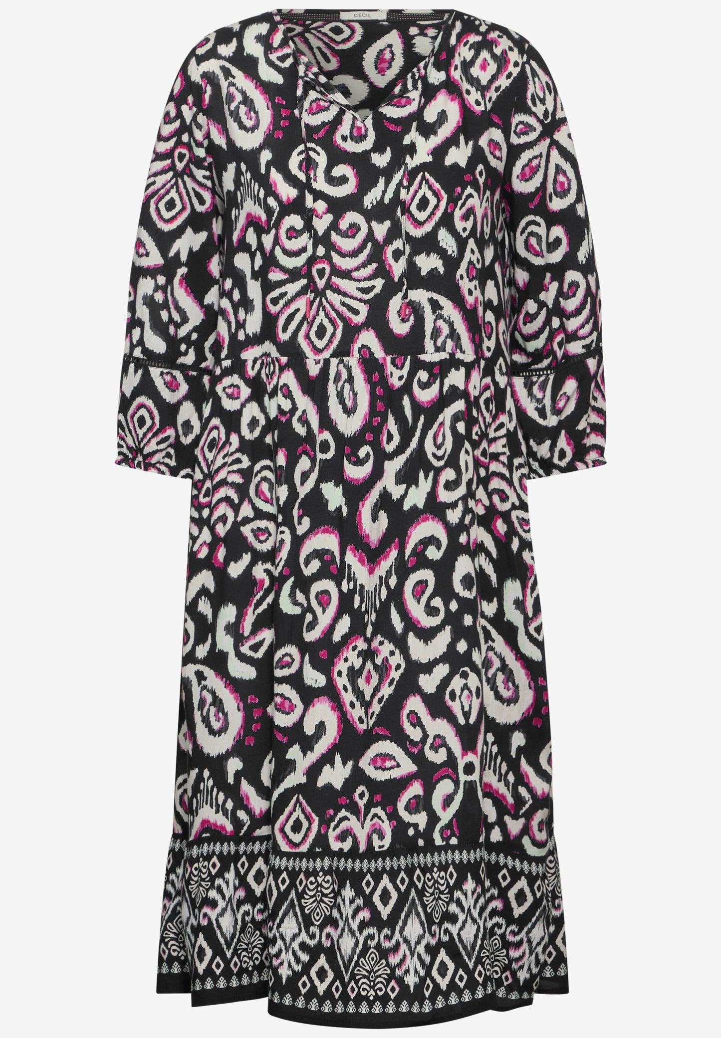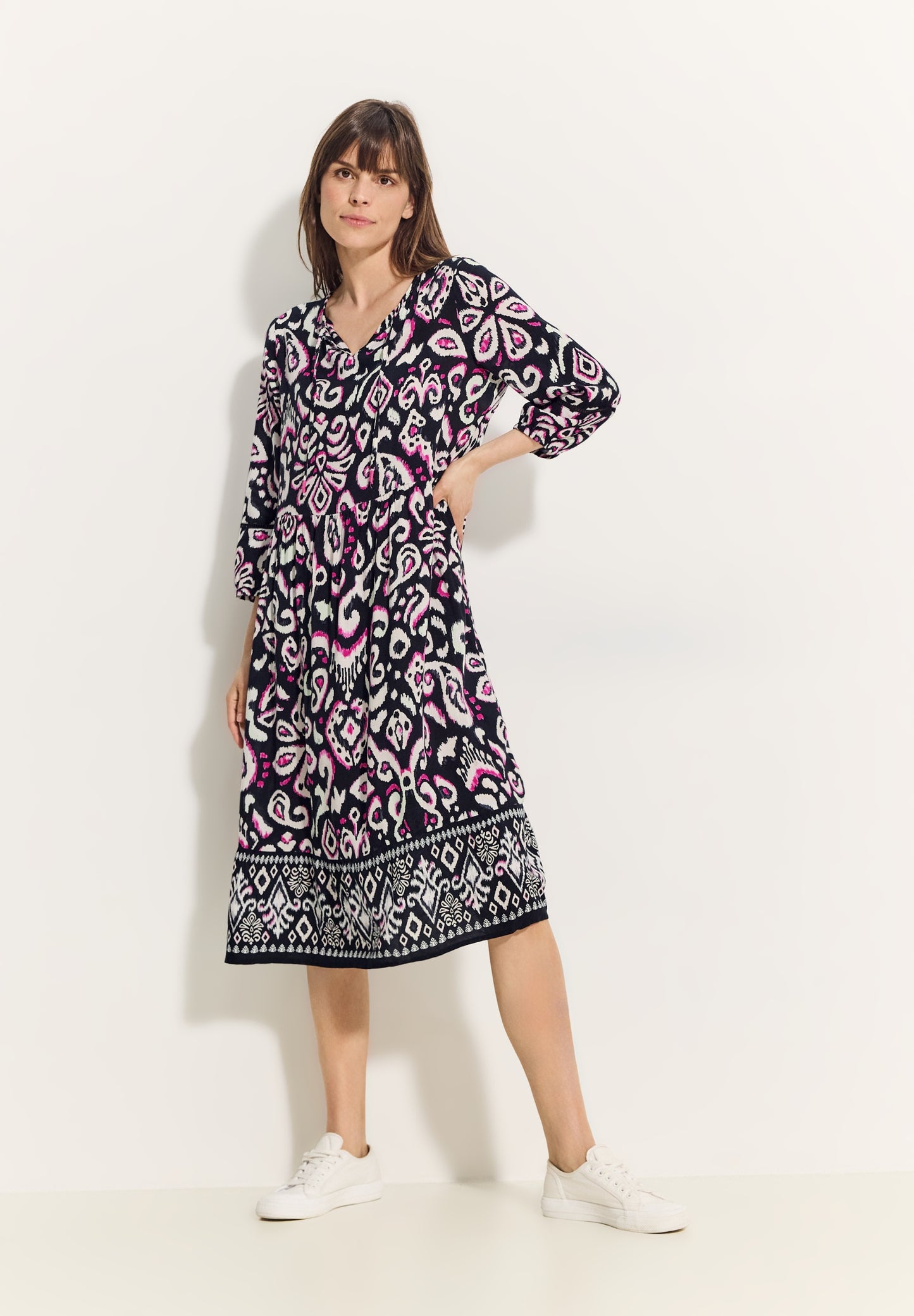 Das Tunika Kleid von CECIL für Damen ist ein charmantes Midikleid mit einem geschlitzten Ausschnitt und einem schicken Banddetail für eine stilvolle Optik. Mit 3/4 Ärmeln und Bündchen bietet es Komfort und Vielseitigkeit. Hergestellt aus weicher Viskose bietet es angenehmen Tragekomfort, während der Printmix am Saum dem Kleid eine moderne Note verleiht.